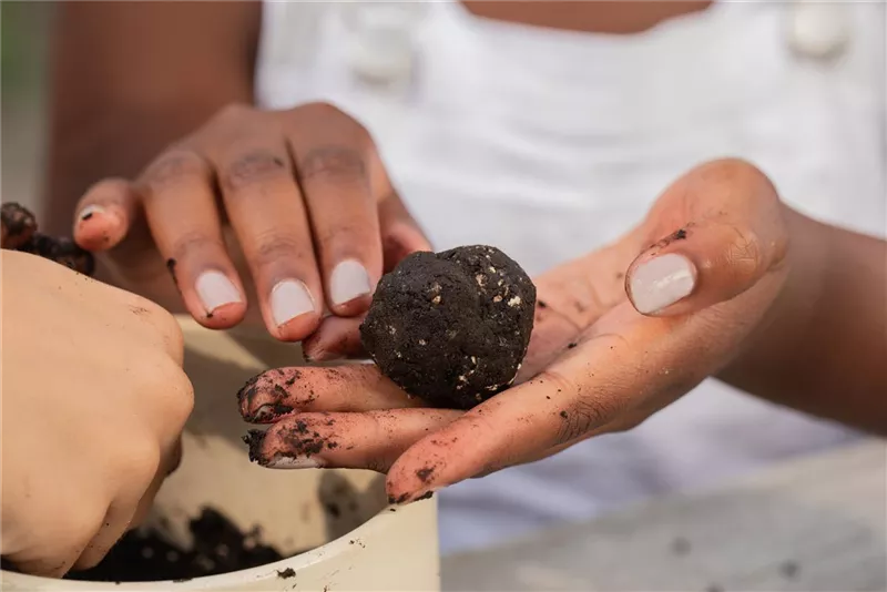 Alle Zutaten werden in einer großen Schüssel miteinander vermengt. Eventuell wird für das Mischen der Masse mehr Wasser benötigt, da hilft es, wenn man ein bisschen herumprobiert. Für das Mischen empfiehlt sich das Tragen von Handschuhen, damit die Masse nicht allzu sehr an den Fingern kleben bleibt. Dann werden aus der Masse kleine Kugeln geformt, die zum Trocknen auf Zeitungspapier gelegt werden. Wenn die Samenbomben vollständig durchgetrocknet sind, können sie direkt ins eigene Beet geworfen werden, oder als Geschenk eine blumige Freude machen.