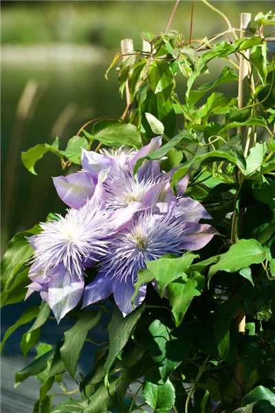 Der Schnitt erfolgt etwa ½ cm über einem Blattknospenpaar. Und was mögen Waldreben sonst noch so? Feuchte Füße und Sonne im Gesicht. Das heißt: Der Boden im Wurzelbereich sollte nie ganz austrocknen und stets im Schatten liegen (Mulchen ist eine gute Hilfe; Staunässe jedoch vermeiden). Die meisten Sorten sind sehr sonnenverträglich, kommen aber auch mit lichtem Schatten zurecht. Clematis sind in vielen bewährten und beliebten Sorten zu haben. Wer allerdings neue Bekanntschaften schließen möchte, probiert die dicht gefüllte, dunkelviolett-blaue 'Franziska Maria'®, die hellblaue Sternen-Waldrebe 'Crystal Fountain'™ mit langen, fast weißen Staubfäden oder die elegante rosafarbene 'Ooh La La'™ mit dunklerer Mittelrippe.