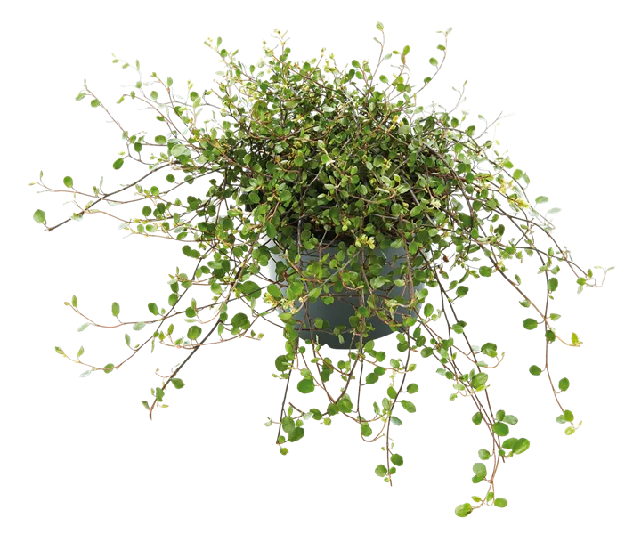 Als immergrüner Bodendecker empfiehlt sich die Mühlenbeckie (Muehlenbeckia) als Unterpflanzung des Fuchsien-Stämmchens. Die pflegeleichte Pflanze kommt sowohl mit sonnigen als auch mit halbschattigen Standorten zurecht.