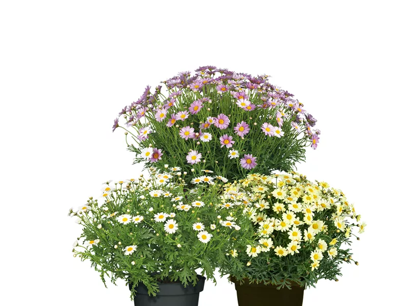 Der Sommer-Margeriten-Busch (Argyranthemum frutescens) ist ein Eyecatcher auf Terrasse und Balkon. Ob in Rosa, Gelb oder Weiß, die unendliche Blütenpracht beeindruckt von Mai bis Oktober. Der Margeriten-Busch bevorzugt einen vollsonnigen Standort. Er ist sehr pflegeleicht, nur die Erhaltung der Blütenpracht erfordert ein regelmäßiges Entfernen verwelkter Blüten.